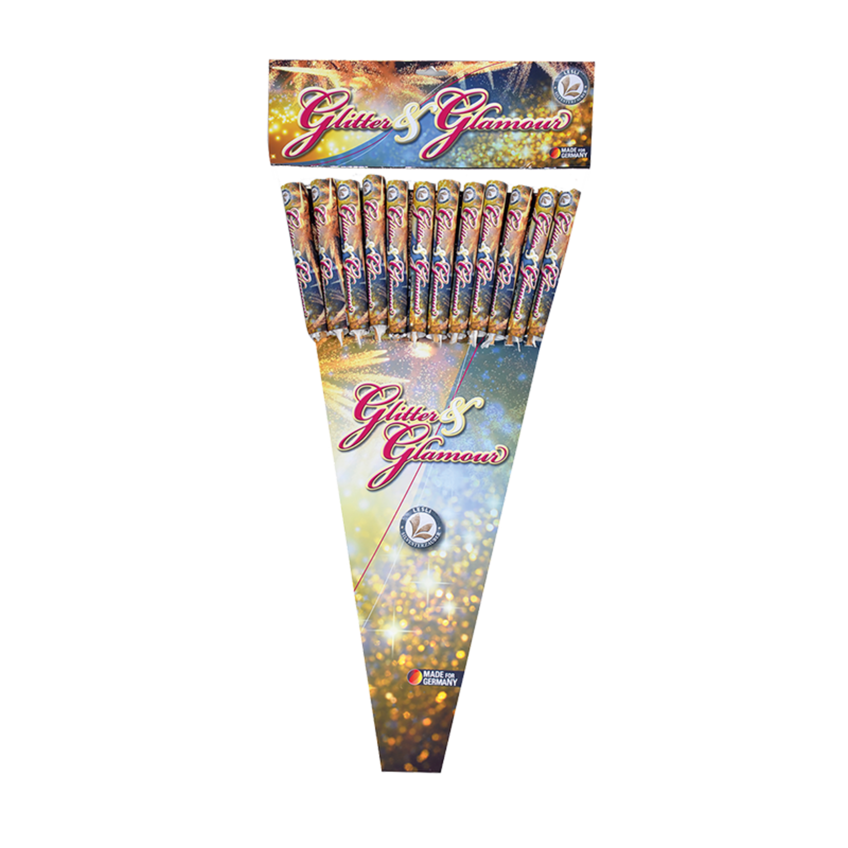 12 Stab-Raketen mit Blitzlichtern und kraftvollen Effekten in Rot, Grün, Blau und Lila.