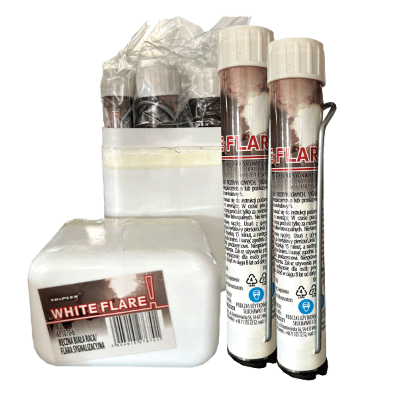 Weisse Signalrakete mit sicherem Metallgriff, Seefackel für Notfälle.